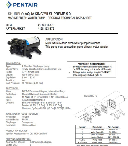View full details24V SHURflo PRESS PUMP 19LPM DIAPHRAGM "AQUAKING II SUPREME"