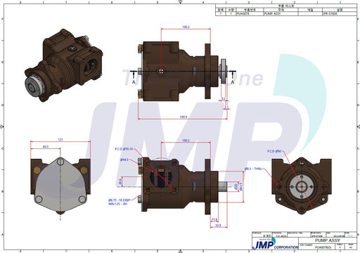 JMP MarineReplacement raw water pump for Cummins 6BT engines with Sherwood P1722 pump. Water connections: 2" inlet & 1-3/4" outlet ports. The mounting a...