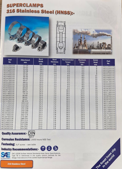 Jubilee® Superclamp 17-19mm 316 Stainless Steel Original Jubilee® Superclamp. Lloyds register approved 316 Stainless Steel. These clamps can be use...