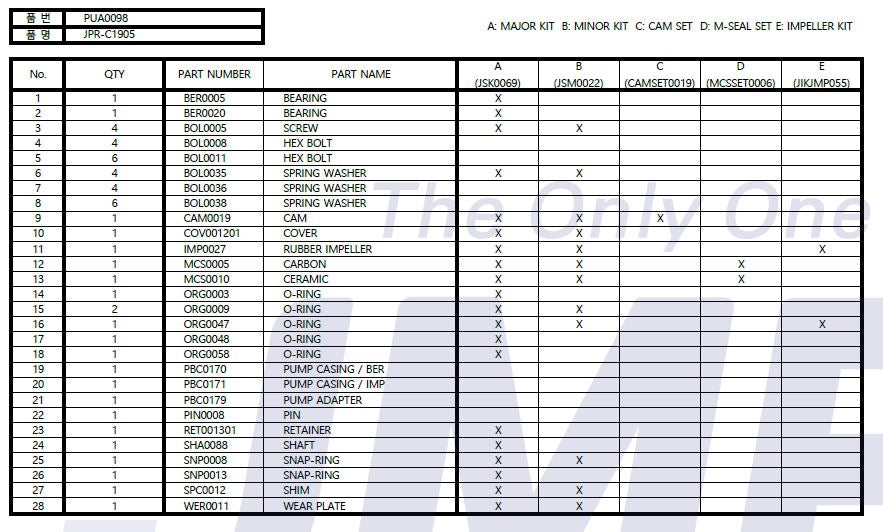 Major Repair Kit JSK0069 for JMP Pump JPR-C1905 ( Jabsco 18770-0003) QSK19