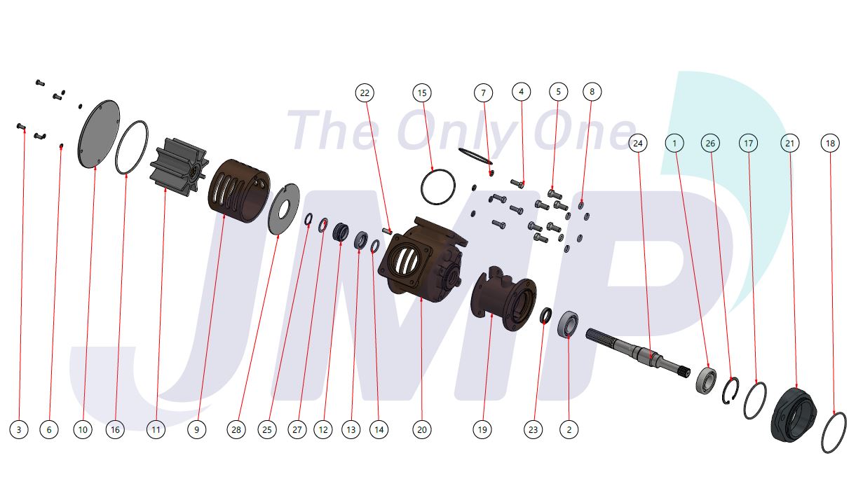 Parts Compatible with Genuine Cummins Pump P/N 3866609 on QSK19 Models & Jabsco 18770-0003 Pump